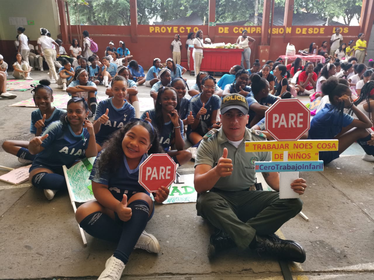 Es por ello que la Dirección de Protección y Servicios Especiales a través del grupo de Protección a la Infancia y Adolescencia del municipio de San Andrés de Tumaco en el Departamento de Nariño al sur de Colombia, hace presencia en la institución educativa Santa Teresita, con el fin de sensibilizar a los niños, niñas y adolescentes sobre los riesgos y problemáticas que enfrenta el país en temas de trabajo infantil, al igual que los daños físicos y psicológicos que esta actividad puede generar en la niñez colombiana.