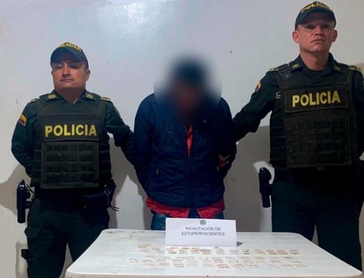Durante actividades de prevención, registro y control en el parque principal del municipio, los uniformados, gracias a su pericia y profesionalismo, practicaron un registro personal a un ciudadano presente en el lugar, a quien se le halló en la pretina del pantalón una bolsa que contenía 34 papeletas de bazuco, así como 30 papeletas de base de coca.