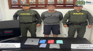 Hombre fue detenido con celulares, tabletas, un televisor y varios cargadores hurtados
