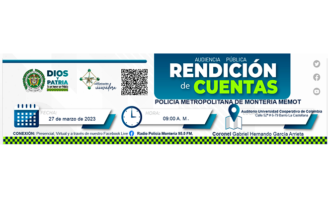 Invitación rendición de cuentas Policía Metropolitana de Montería vigencia 2022