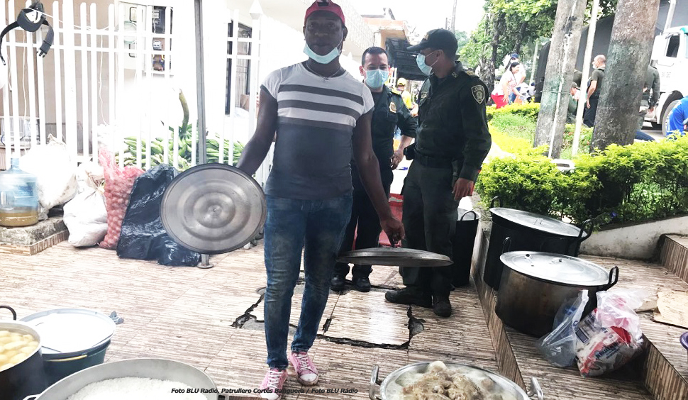 El patrullero que con sancocho de pollo ayuda a mitigar el hambre en Mocoa