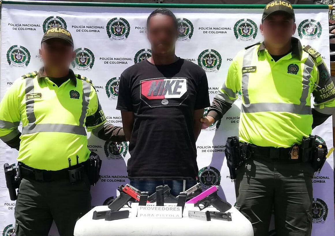 Capturamos una persona con cinco armas de fuego tipo pistola, al parecer provenientes de un país vecino